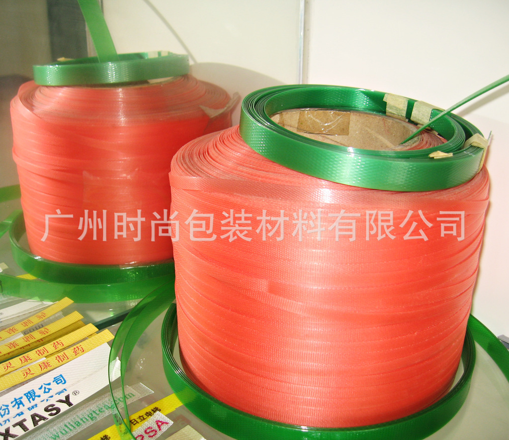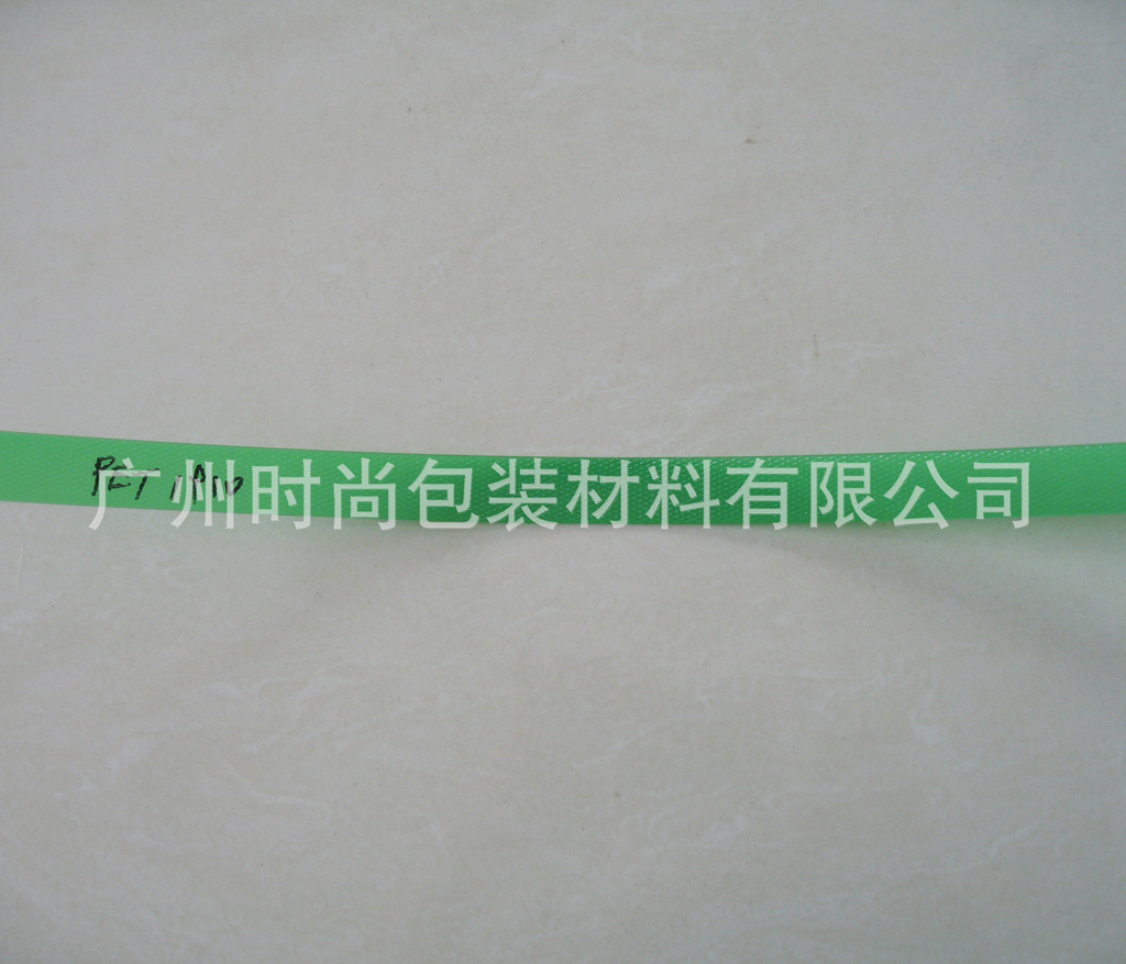 压花塑钢带表面绿色、压油花纹,带子两侧边缘也有纹线,极大增加了摩擦力,不仅使捆扎长时间保持拉紧力而且容易打包、打包后不易断开,外光亮泽,比较美观,是PET市场的主流产品。PET塑钢带的性价比介于PP带和钢带之间,性能更趋向于打包刚带,而单位成本却仅仅是钢带的六分之一。