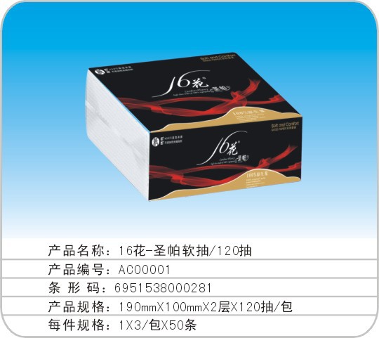 东莞市十六花纸业有限公司是卫生卷纸、盘纸、擦手纸、抽纸、方巾、盒装纸、餐巾纸等产品专业生产加工的公司,自主品牌有“‘16花’、‘十六花’、‘大千’”。公司拥有完整、科学的质量管理体系和专业生产团队及生产设备。地处珠三角中心地带,自然条件优越,交通便利,销售网络覆盖中国及周边国家。近年来,公司不断提高新产品的开发和包装技术,在同行业中出得了较大的进步,使产品质量稳步上升,受到消费者的青睐。本公司所有产品均采用纯天然木浆制造,不含荧光剂,纸质柔软平滑、清洁卫生、吸水性强、水溶性好,是生活用纸的最佳选择。公司以不断完善产品质量、确保客户满意的理念服务大众。始终奉行着客户至上的宗旨。我们将致力于为广大消费者提供更舒适、时尚、洁净的日常生活用纸。十六花纸业愿与社会各界精诚合作、共创美好生活。欢迎各界朋友莅临参观、指导和业务洽谈。
