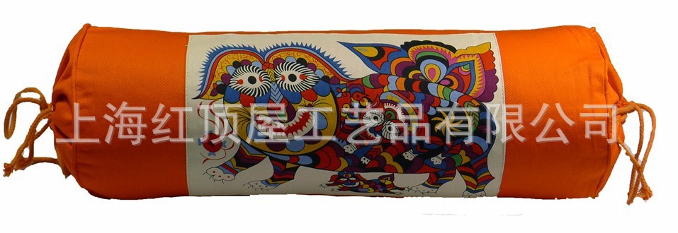 斗贤布艺民俗糖果枕剪纸画圆枕腰枕特色抱枕套