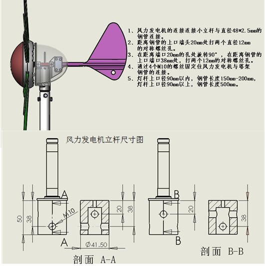 注:风力发电机与立杆连接部位扭力需达到80扭米,在有条件的情况下,使用锁纹胶进行固定。