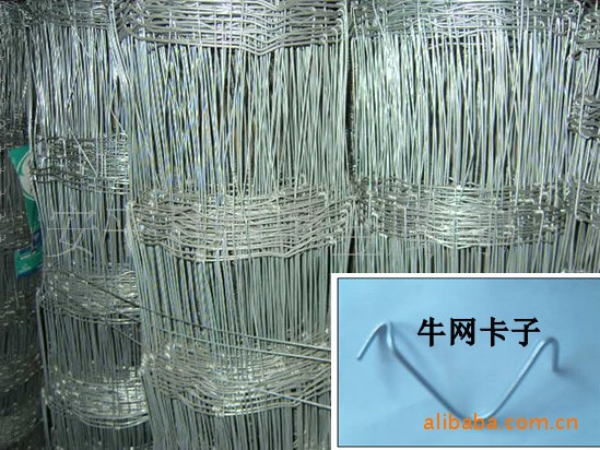 草原围栏网(Grassland Fence)它采用高强度钢丝材质,自动化拧编而成,结构新颖坚固精密,网面平整,网眼均匀整体性强,韧性大、不并拢、防滑、抗压、抗震、耐腐蚀,防风、防雨无论当地气候、地理、自然条件多么恶劣且能保证使用寿命长。即使局部裁截,局部承受压力也不至发生松动变形现象,该产品防腐蚀性能好,有极强的防腐抗氧化等特点,具有一般钢丝网都不具备的优点。草原围栏网执行标准: JB/T 7137-2007草原围栏网分类:环扣型草原网、环绕型草原网草原围栏网生产范围:7-110-60 ,7-100-60 7-90-60 也可根据用户需求而定。取材一般采用热镀锌丝,上锌量一般为每平方米60克—100克,潮湿地区要求较高,采用230克左右的丝,最近非洲地区也采用冷镀锌丝制作。横向丝,抗拉力80KG——90KG以增加网的抗冲击力。竖向丝,抗拉力40KG—50KG的低碳钢丝以便缠绕在横丝上。草原围栏网特点:草原围栏网结构新颖,坚固精密,网面平整,网眼均匀,整体性强,韧性大、不并拢、防滑、抗压、防风、防雨无论当地自然条件多么恶劣,使用寿命一般长达几十年。即使局部裁截,局部承受压力也不至发生松动变形现象,并具有极强的防腐蚀、抗氧化能力,有一般钢丝网都不具备的优点。而且还克服了电焊网焊接点易开焊脱落的缺点,一次性安装永不松动。目前我厂生产的草原网围栏已成为我国沙原治理、生态环境治理首选网围栏,并作为中国的名优网围栏正逐步纳入国家重点生态治理项目。牛栏网取材一般采用热镀锌丝,上锌量一般为每平方米60克-100克,潮湿地区要求较高,采用230克左右的丝,最近非洲地区也采用冷镀锌丝制作。 横向丝,抗拉力80KG--90KG以增加网的抗冲击力。 竖向丝,抗拉力40KG-50KG的低炭钢丝以便缠绕在横丝上。(缠绕时加2T-3T机械压力防止竖向丝滑动) 牛栏网网面要求平整度为:每50米长上下起伏点不超过1个(10平方厘米),上下起伏高低不超过10MM。网格左右误差不超过3MM,每卷牛栏网横丝不许有接头。网格破损率0草原围栏网用途:草原网围栏主要用于牧区草原建设,可围建草原和实行定点放牧,分栏放牧。便于草场资源的计划使用,有效的提高草原利用率和放牧效率,防止草场退化, 保护自然环境。同时也适用与农、牧专业户建立家庭养殖场设立最新产品也是难度很大的就是生产波浪型的,这样的产品是采用了先进的压波工艺在每个网格之间压一个深12MM宽40MM弯,此弯俗称“波”更加使得网面平整,在冬夏气候变化大地区缓解了热胀冷缩并防止有猛兽撞击时网面自动回位增加网面的缓冲力