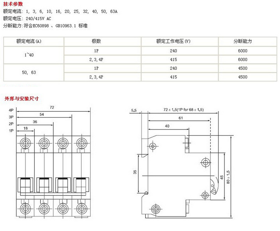 DZ47-63系列小型断路器(以下简称断路器)是一种具有过载与短路双重保护的限流型高分断
