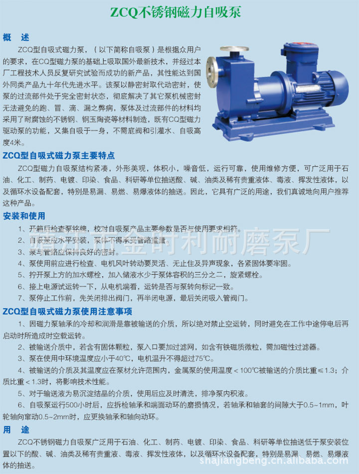 1、适用于城市环保、建筑、消防、化工、制药、染料、酿造、电力、电镀、造纸、工矿冲洗、设备冷却及污水、污泥、污渣的吸取、排送及压滤;