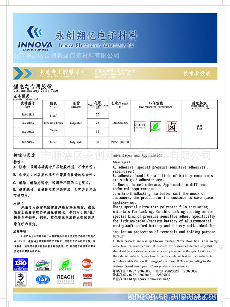 产品名称(ITEM):电池胶粘带 | 型号(TYPE):EAL-19B2A |