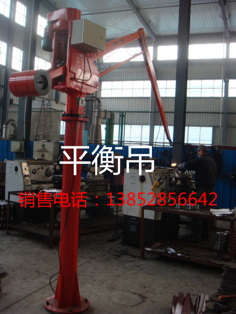 平衡吊是一种以平衡杆系为主要结构特征的吊运装置。采用伺服传动系统的平衡吊则称为伺服平衡吊。该吊运装置主要由立柱、头架、手臂及传动部分组成,结构紧凑,造型美观。其主要特点是运用杆系的平衡原理和放大尺原理,操作者只需用几公斤力,就能使几十至上千公斤的重物在上下、前后、水平廻转三维空间轻巧自如地吊装,且运行可靠,是生产线、机床等设备工件上、下料的理想吊运装置。它的成功研制,填补了我国一项空白,属国内首创。