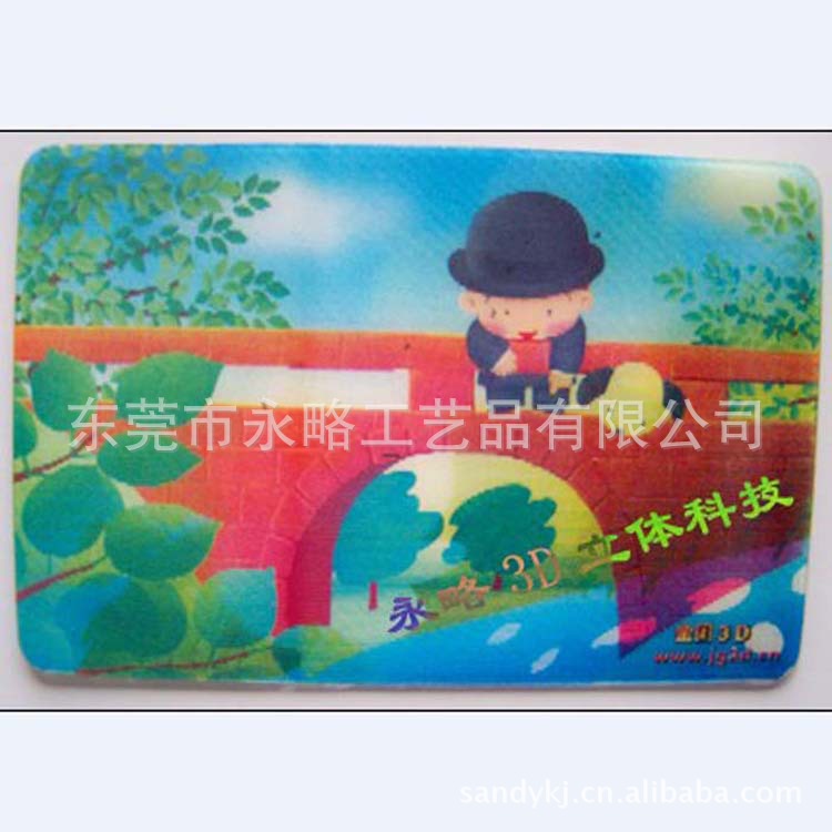 本厂专业生产各种三维立体(3D)数位变图产品,图像色彩鲜艳,图形清晰;独特的动态视觉效果,图像好像浮在画面上一样,较强的广告吸引力。可按客户要求制作不同形状及大小,打样3-5天,做货10天,起货快,价格便宜。是各企业促销活动之理想选择,欢迎随时咨询!