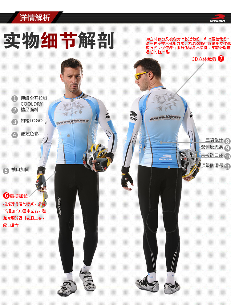 RUSUOO-C009 春秋骑行服上衣 骑行衣 自行车服 自行车衣服