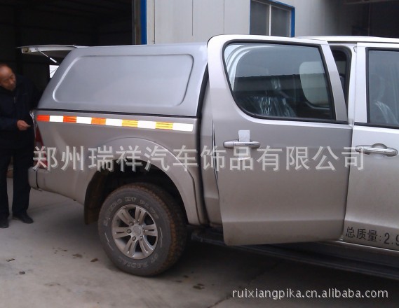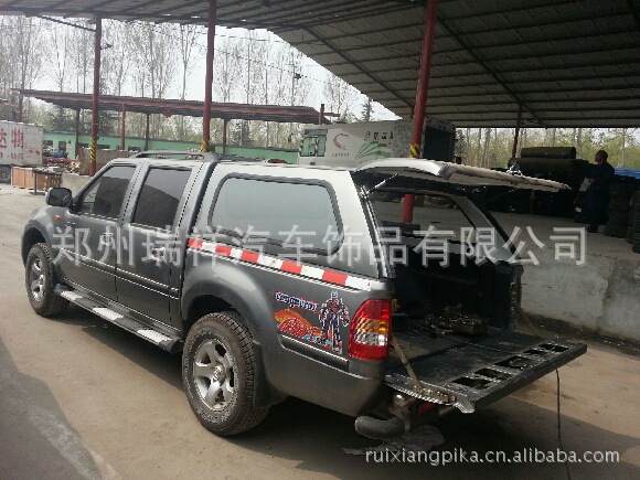 我公司生产的皮卡车货箱盖特点:材质:双层冷钢板。优点:全金属车蓬。产品强度大,抗冲击性好,易修补,且具有良好的防锈性防腐性等 各类型产品外型流畅美观,设计新颖独特,内部布局合理,可防雨,防晒,货物安全清洁,实用性强 产品优势:基本国产所有皮卡车型(限标准车厢)均现货供应 制作优势:加长车厢、新型后盖可根据客户要求进行订做。