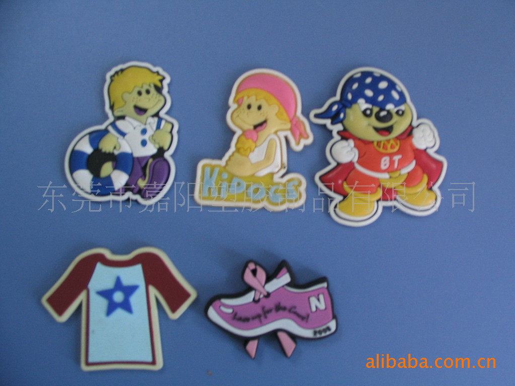 东莞嘉阳塑胶有限公司(产品简介)1、PVC软胶钥匙扣.杯垫. 软胶徽章 2.软胶手机来电闪.腰带.橡皮擦 3.Pvc磁性冰箱贴4、PVC软胶手机链.手机座 .手机擦 5.PVC软胶开瓶器,真仿皮手腕带. 6.充油.充气挂饰7.PVC软胶汽车防滑垫.挂饰及摆饰 8.软胶打火机套.U盘套.软胶笔套.9.PVC软胶行李吊牌.相框 .胶钟表 10.PVC软胶台垫.啤酒垫.PVC地毯. 11. 各种pvc鞋底12..PVC软胶手环.手镯.头花.戒指. 13.PVC软胶立体杯皮;软胶马克杯 14.环保拉片系列15..PVC软胶磁贴图案.门挂. 拼图 16.pvc软胶、手表带、17. PVC胶章商标 18.PVC拉链头 19..环保滴胶商标.