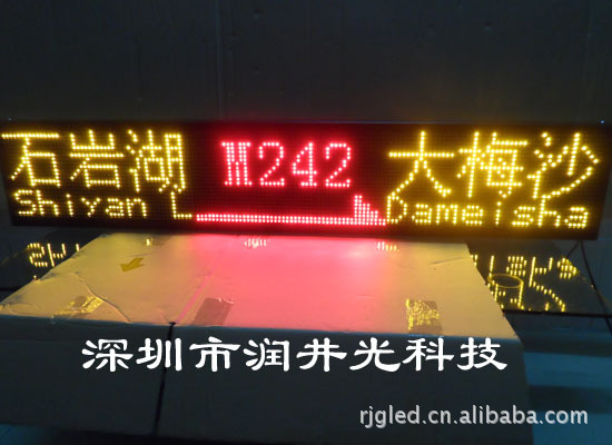 24点2行公交车显示屏幕产品特点:1)、系统设计先进合理,性价比高,显示效果稳定,安装维护方便。