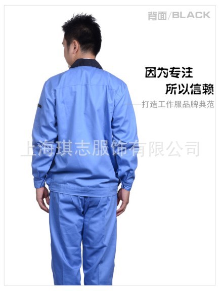面料:工作服成衣布料采用环保染色,手感舒适,不起球、不褪色、吸湿透气 性好,抗皱能力强。易洗易干不易皱。