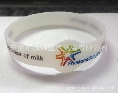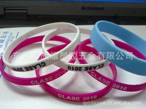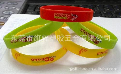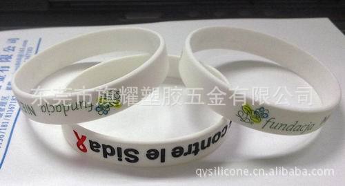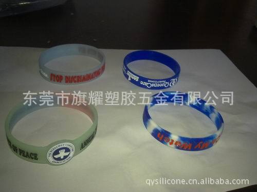 2.印刷硅胶手环:也就是免开模费的硅胶手环,如特殊尺寸需开模具,印刷手环分为多色丝印,单色丝印,多色套印,是一种做货比较快的硅胶手环。