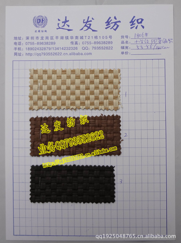 大量现货供应PP编织布、编织布、纸编织、草编织、纸草编织布、麻布编织、条纹编织、彩条编织、工艺编织、精细编织、沙滩网编织、烫金编织、真草编织、箱包布料、PP草编织布、PVC编织网、仿编织皮革、鞋材面料等。。。可做pu、PVC、优丽胶、不干胶、自粘、防污、抗UP、紫外线透气、防泼水、阻燃、涂银、涂金、压胶、压光、印花等后加工。(本产品可通过欧洲、美国最新环保标准)环保活性染色其色泽亮丽,广泛用于服装、鞋材、箱包、手袋、玩具、家私、包装盒、工艺品、装饰品等。