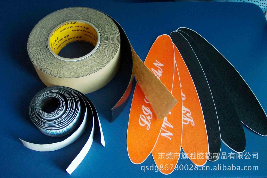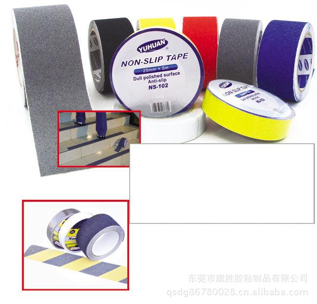 表面砂:为精选黑刚玉(金刚砂、荧光砂、氧化铝颗粒),碳化硅,玻璃沙、石英砂、橡塑防滑纤维、无砂材料及特种防滑材料等。 基材 :PVC、PP、PET、合成纸,铝质等。 底胶: 即用型强力粘胶。 底纸:白色,牛皮纸,环保硅油纸。 外观颜色:由用户指定,可以铺印各种精美的彩色图案、商标和文字,规格尺寸根据用户要求定做。 | |