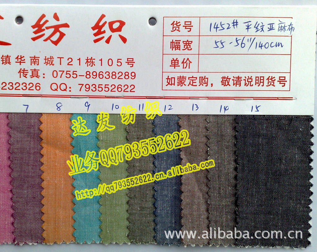 大量现货供应亚麻染色、苎麻染色、剑麻色织、黄麻坯布、大麻系列、亚麻半漂、染色、麻丝麻绳、仿麻布、仿麻呢、麻花优织、竹节麻布、人棉染色、棉麻绲织、手工织麻、印花麻布、工艺布、环保麻布 可做pu、PVC、优丽胶、贴合、防污、抗UP、紫外线透气、防泼水、阻燃、涂银、涂金、印花等后加工。(本产品可通过欧洲、美国最新环保标准)其色泽亮丽,广泛用于服装、鞋材、箱包、手袋、玩具、家私、包装盒、工艺品、装饰品等。