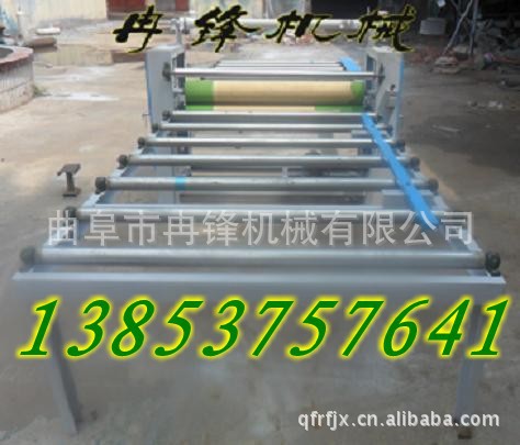 自动完成涂胶,加热贴面.烘干.两次冷压,三次热压于一体,靠链条、链轮传送,结构紧凑合理,操作方便,速度可调。适用于防火板的表面贴面,还能将各种木质板(三合板、密度板、刨花板)进行深加工贴面.如木纹纸、PVC波音、免漆纸、高分子膜等.可生产各种花色的豪华装饰板.利润倍增,适合家具厂、人造板厂、乡镇企业和个体户接产.设备分为大中小多种型号,还可根据客户要求加工定做。