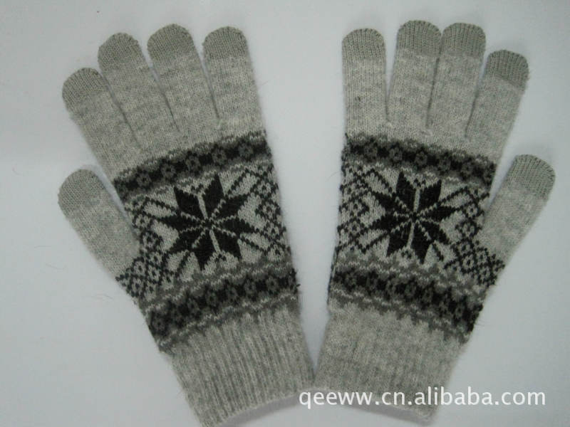 批发供应女款大提花羊毛针织手套上虞手套厂