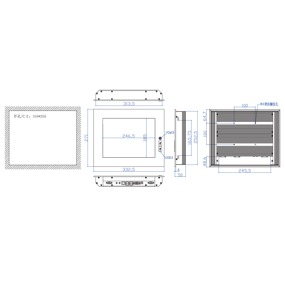 ● 丰富的工业控制常用接口,支持多个RS232/485串口、网口、USB端口等