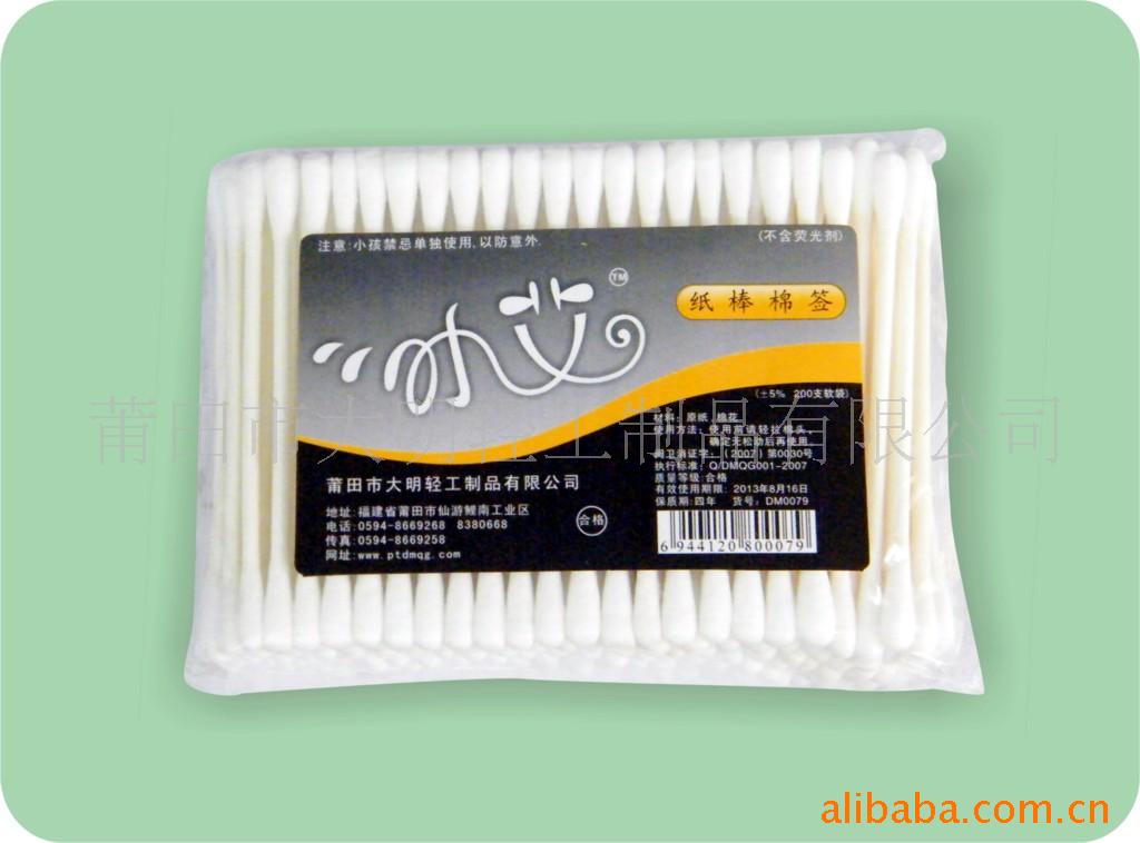 莆田市大明轻工制品有限公司是家棉签产品的专业制造商,品种全、款式多,有高档的纸棒棉签、中档的木棒棉签、低档的塑棒棉签,还有婴童棉签、化妆棉签等系列的产品。纸棒棉签有市场上通用型2.5mm直径的,还有婴儿用的,1.8mm直径的细纸棒,在棉头外形上有:圆头型、螺旋头、尖头、沐浴头、婴儿大头、挖耳勺、黑色棉签等。我公司产品质量好、价格适中,产品远销欧美、日韩等市场,欢迎广大客商来电来函洽谈!