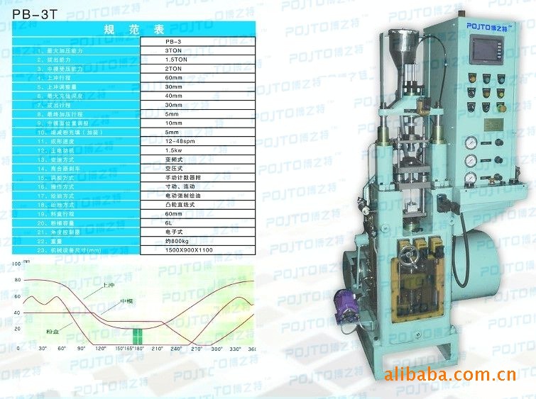 >>上冲动作曲线由凸轮驱动,填料时间加长,加压曲线平缓(机械噪声和振动小),加压时具有10°~15的持压功能(比普通压机全长更加稳定,普通压机是采用单点压制无此功能)并柔和了曲轴式加压的特点,可以有较好的成形效果。成形速度快、稳定性高。