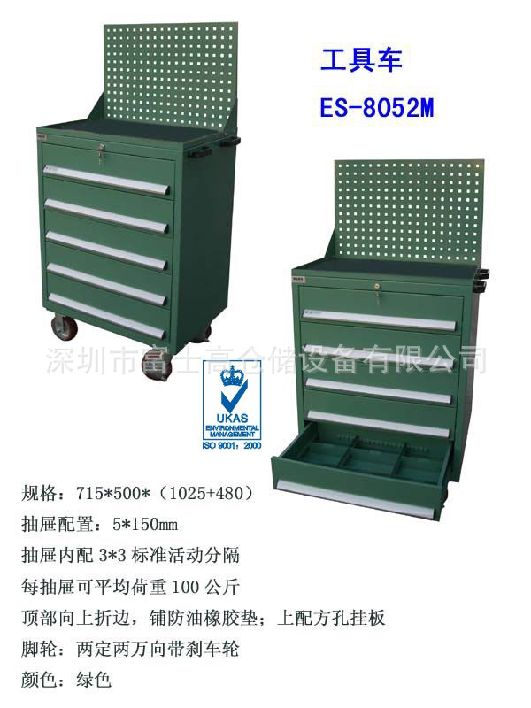 工具车是可移动的工具柜,适合在生产现场安全、高效的运送工具和零部件。标准型工具车市由各种型号的工具柜增加顶框和底部脚灯移动部件而组成。抽屉的选型和配置与所选用的工具柜完全一致。