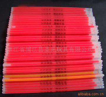 6.产品用途:演唱会、舞厅、生日、聚会、婚礼、宴会、晚会、节日、庆典、郊游、野外露营等场合的照明和装饰;因荧光棒属于化学发光,无高温和放射性,不需要借助电源或其他能源,因此特别适用于:潜水、营救、探险、野外、高空和危险作业等环境。大量用于酒吧,演唱会,各种大型庆祝活动,给人生活带来更多的精彩。在国处发光棒