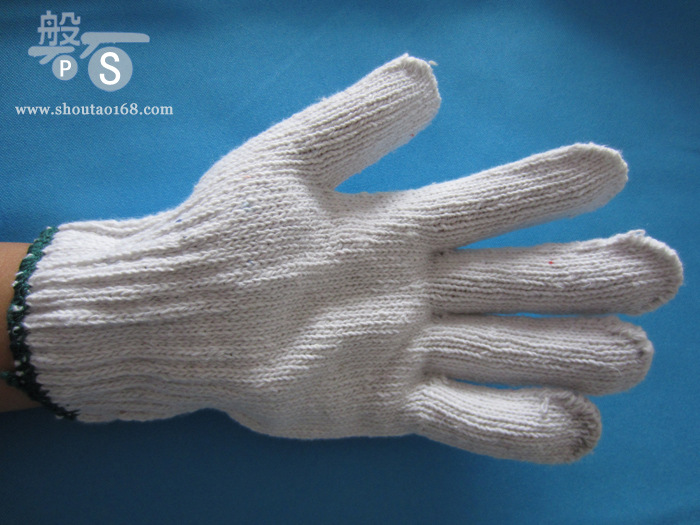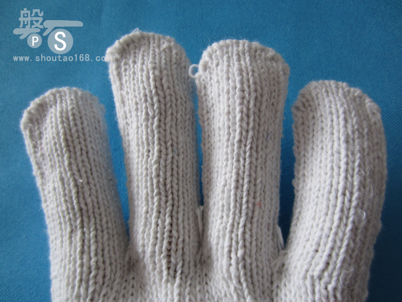 材质:此款纱手套由2股再生棉纱链条机织,无漏针,破损现象