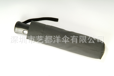 21寸8开三折全自动晴雨伞,三折铝合金配玻纤超轻伞骨,防割手设计,电镍中棒,橡胶漆全自动手柄,PG素色布
