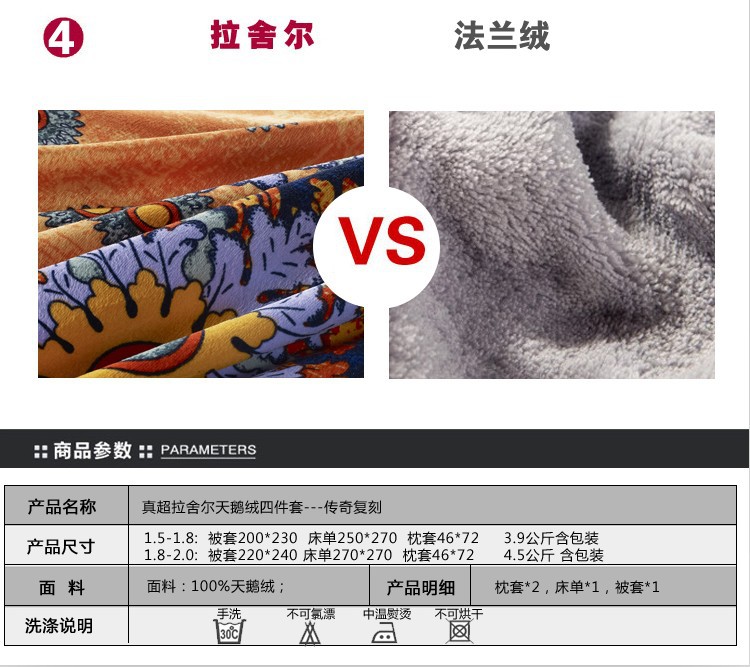 真超拉舍尔天鹅绒四件套产品的实拍细节图如下。。