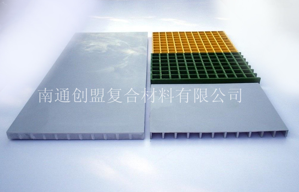 南通创盟复合材料有限公司采用模塑成型工艺制作的带有许多规则分布的矩形、方形空格的玻璃钢板材,具有双向同性的力学特征,还具有耐腐蚀、抗老化、防滑阻燃等物理特性。