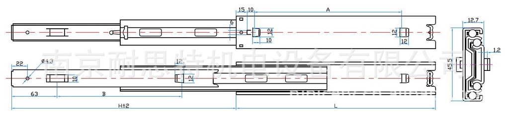 供应NNK橱柜挂蓝三节钢珠道轨(芯焊高脚)1045-U2