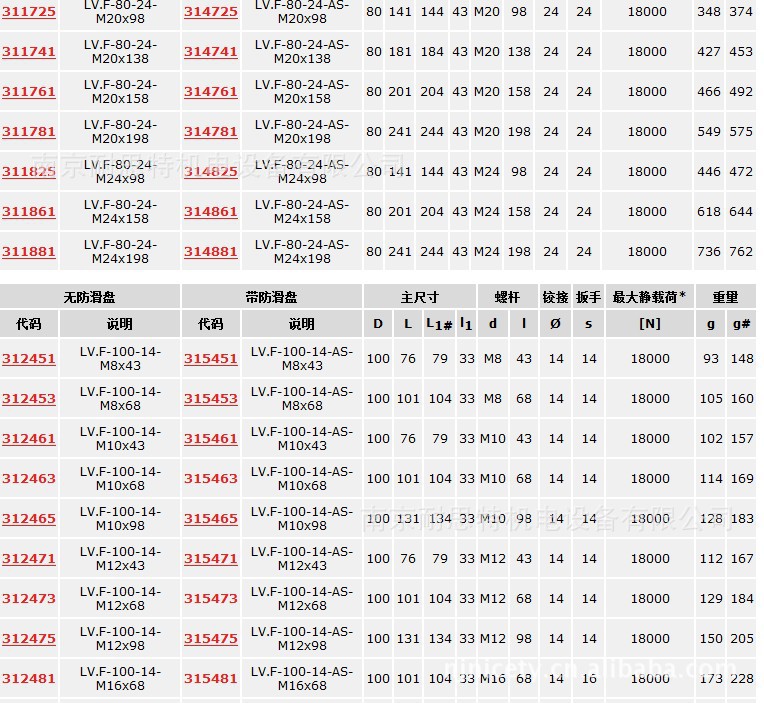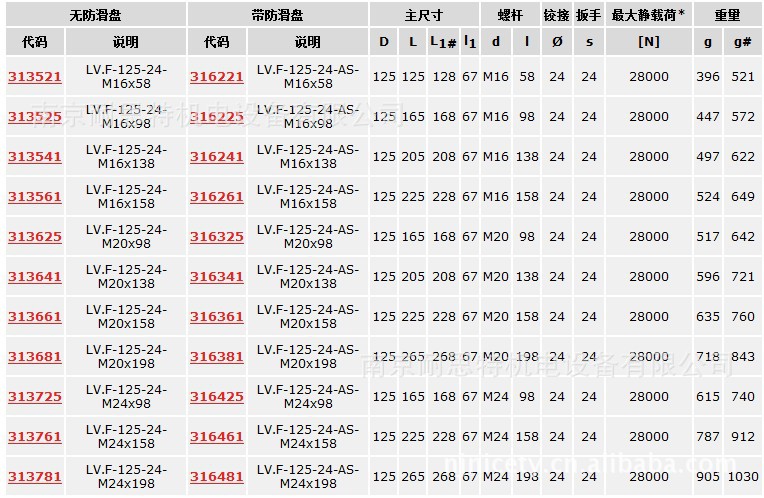 如需单独订购底座及螺杆,请参见可能匹配的底座/螺杆组合表(参见第757页)。