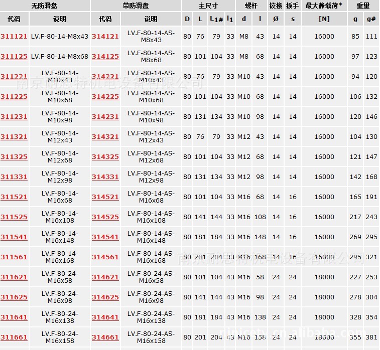 可另行订购的镀锌钢螺母(参见螺母 NT.第756页)。