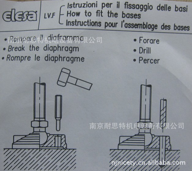 开两个呈180°的地面安装孔,并覆盖以可轻松通过金属工具拆除的脆性塑料隔膜。在无需地面安装时,此塑料盖可防止污垢及尘土的不良沉积。(参见下述装配说明)。