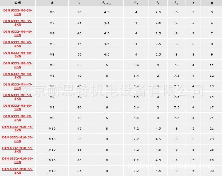 钢质,黑色氧化处理,等级5.8(抗拉强度为500N/mm²),带内六角头。- SK型:带硬化处理的端头。-SKN型:带未经硬化处理的端头。