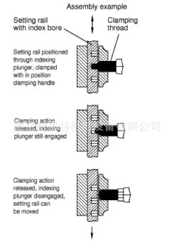 带分度销的滚花旋钮GN7336.7可同时用于定位、固定和夹紧调整元件。手柄克服弹簧拉力将分度销从工作位置轴向拉起,同时滚花旋钮通过六角元件保持与夹紧螺钉的锁定连接,从而实现松脱与夹紧。