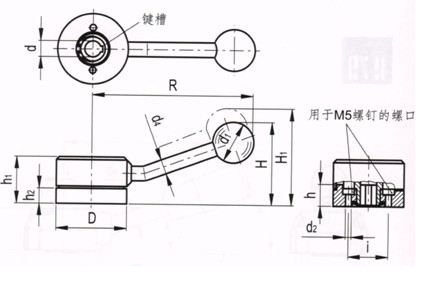 GN215型操作杆可转动主轴,并将其卡位在一特殊位置。欲转动主轴时,需克服弹簧阻力抬起杆臂,直至从槽口中拔出楔形销(单手操作)。如图所示。两个停止可卡口限制操纵角度。底座与主轴间为楔形销连接(标准型)。当该楔形销被用作无间隙锁定时,可使啮合及脱开的操作更为简便。