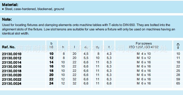 alignment slots of the fixture. Low slot tenons are suitable for use where a fixture will only be used on machines having an