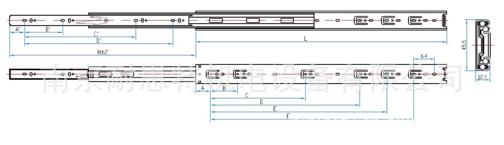 供应NNK橱柜挂蓝三节钢珠道轨(芯焊高脚)1045-U2