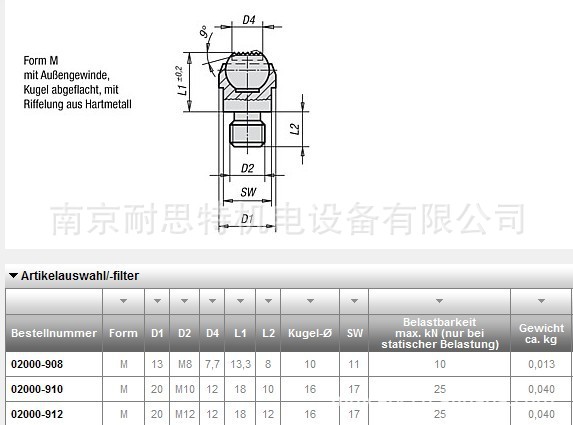 供应NOrelem定位配件夹紧垫NLM02000 Beschreibung Werkstoff: Körper Vergütungsstahl, Kugel Kugellagerstahl 1.2067. Form M: Kugel Vergütungsstahl, mit Hartmetalleinsatz. Ausführung: Körper vergütet und phosphatiert. Kugel gehärtet. Form M Kugel vergütet. Hinweis: Die Pendelauflagen dienen als Anschläge, Auflagen und Druckstücke im Vorrichtungsbau. Die Riffelspitzen aus Hartmetall sind eingelötet.