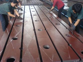 我厂是河北省机械制造行业规模的国有企业.主要生产大型检验平板,划线平板,装配平台,三座标仪平台,镗铣等机床工作台,机床配件,各种规格的检验棒,铣床刀杆,各种规格塞环规等.年产单重60吨以下各种牌号铸铁(钢)件6000余吨.年生产各种机加工产品近万吨,可加工大平面工件尺寸为12米*3.2米*2.5米,可生产4米*4米,3米*10米平台.我厂有专业队伍上门为用户修理平直量具和机床等.我厂持有国家平板量具生产许可证,2000年8月全面通过ISO9001质量体系认证.