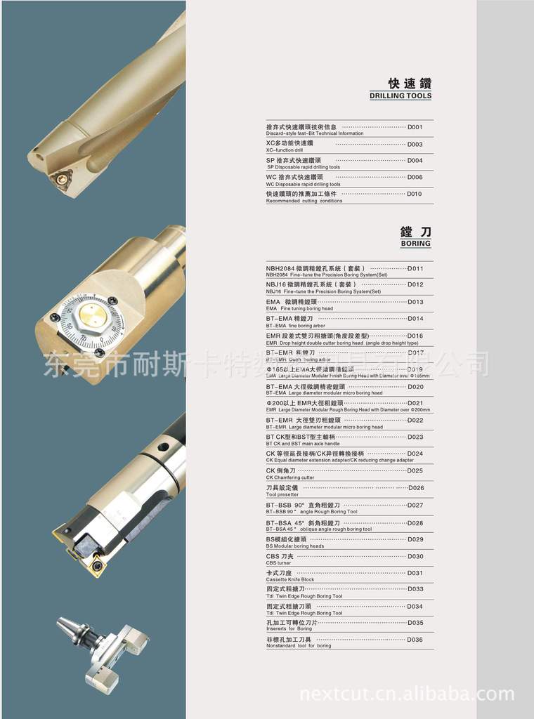 耐斯卡特切削工具,集研发/生产制造/市场销售于一体的切削工具专业厂商,拥有先进的五轴CNC加工机、德国瓦尔特WALTER磨床及行业研发、生产核心技术,获得国家多项专利认证!为你提供产品加工解决方案、研发、设计、生产!主营产品:铣刀杆/铣刀盘/非标钨钢铣刀/刀柄/镗刀/快速钻/喷水钻/带油槽喷水钻(专利产品)/舍弃式快速钻头/玉米铣刀/精镗刀(专利产品)/O型圈刀/O令刀(专利产品)/斜度刀!欢迎访问耐斯卡特网站: 电话:0769-85640005 85640006,请直接拨打我公司电话,不要在网站留言,因网站限制亲留的联系方式看不到,谢谢合作