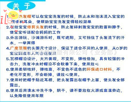 1.洗发帽是很柔软富有弹性的素材,根据孩子头的大小伸缩。