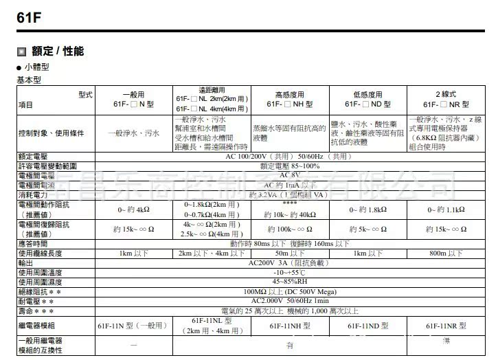 欧姆龙/OMRON 61F-GP-N AC220 液位开关