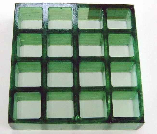 玻璃钢格栅表面成网状分布,颜色以灰色、绿色、黄色、蓝色居多,四周是封闭的,远处看上去更像是一张网。没有经过加工的格栅板是一面成天然的月牙型,而另一面则是光滑的。上图为样品,可以看出格栅板的外表是很美观的。