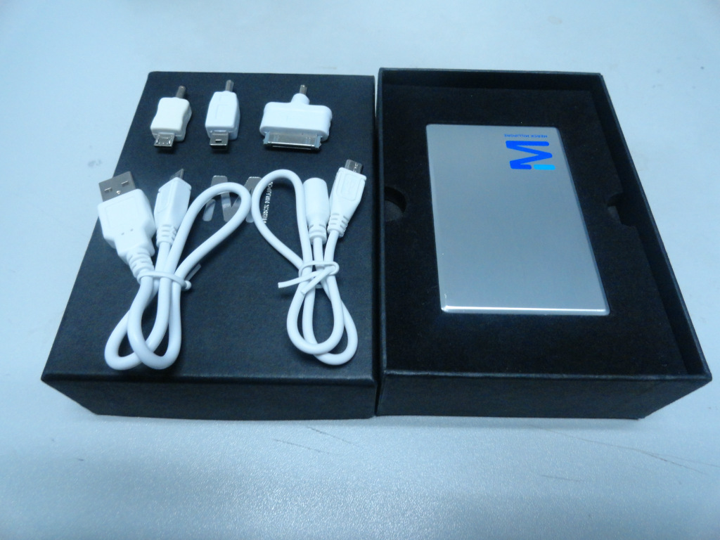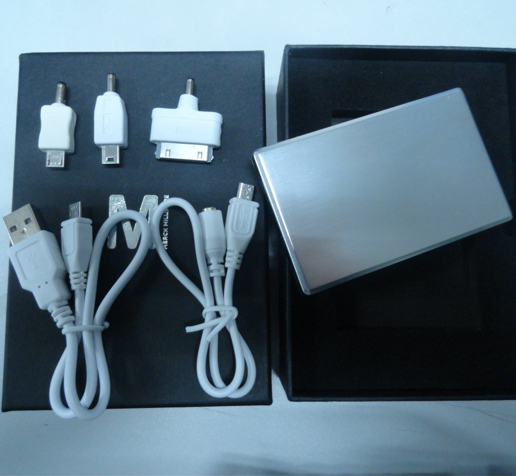 6. 1个USB充电线;1个连接线; 4个手机转接头:iphone, MICRO USB, MINI USB, Nokia 2.0
