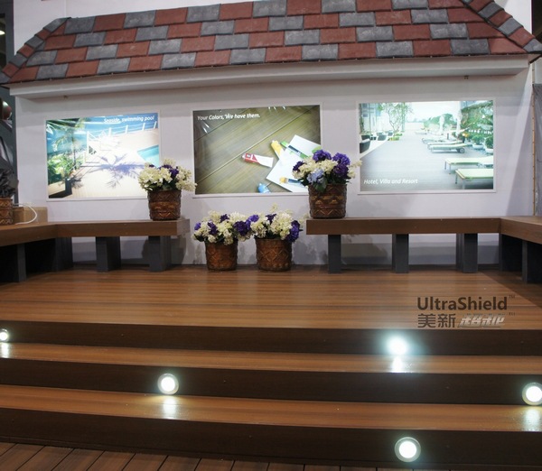 实验数据证明,美新超越塑木的耐磨和抗刮性能比第一代塑木强五倍以上,能有效防止硬物磨刮所引起的破损,特别适合人流密集的场合。另外,该产品的坚固外层能够有效抵御有色液体和含油类液体的渗透,使塑木表面非常易于清洗,历久弥新。这个外层更能够提高塑木对阳光、雨雪、酸雨和海水的抵抗力,使塑木具有超长的使用寿命。