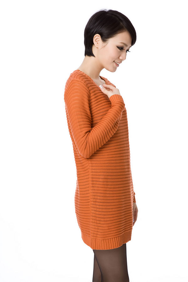 秋冬装新款女式中长款套头毛衣 女圆领打底衫新品羊毛衫女装 061