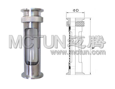 产品概述:玻璃管视镜是卫生管道装置上主要附件之一,它的最大特点是拥有360°的观察面,在医药、食品等卫生生产装置的管道中,可以从各个方位随时观察到管道中液体、气体、蒸汽等介质流动及反应情况,起到监视生产、避免生产过程中事故发生的作用。耐压较底,一般适用于低压管道,公称压力6公斤/厘米的玻璃管视镜中玻璃管无正式产品,如选用须进行试制。