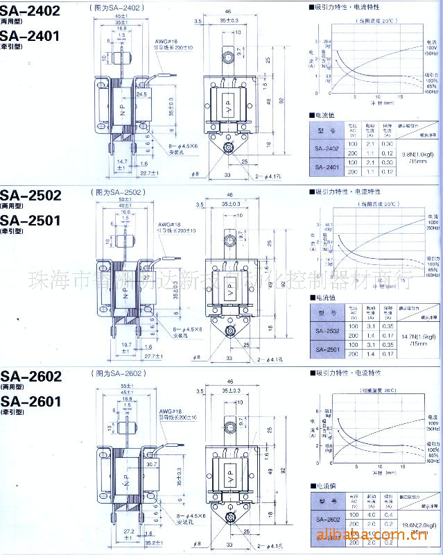 SA-2402、SA-2401、SA-2502、SA-2501、SA-2602、SA-2601